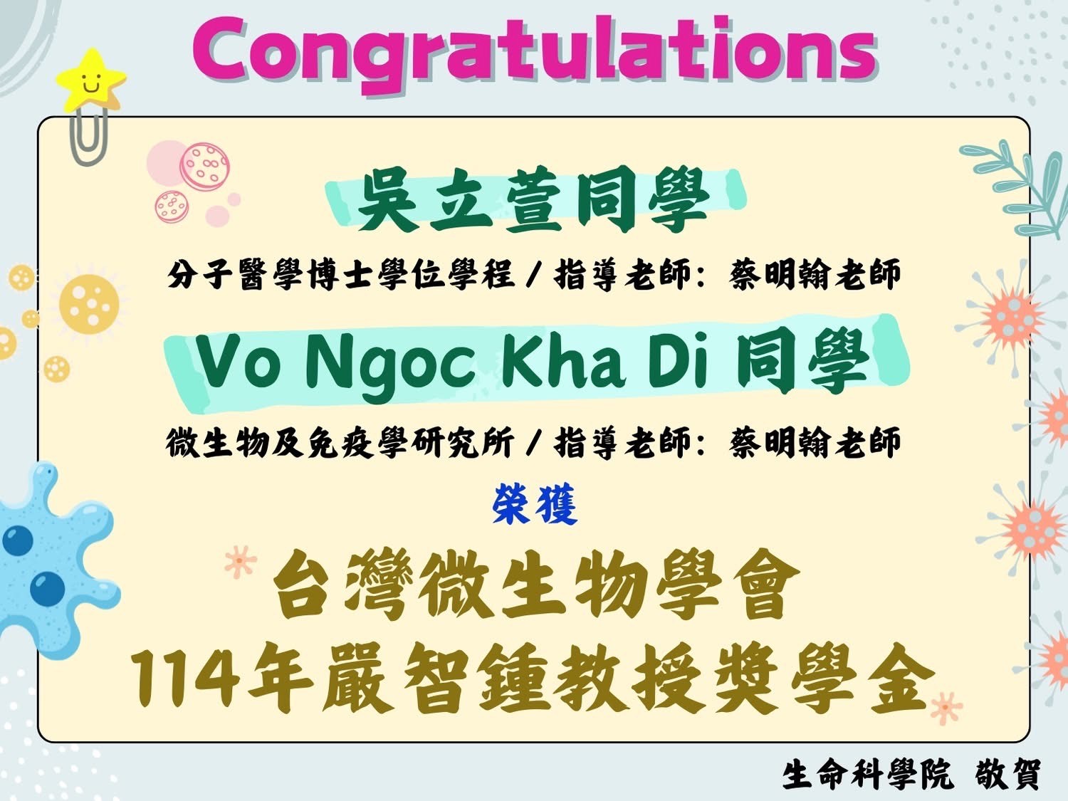 恭賀!「第35屆王民寧獎」之 「優秀論文獎」獲獎同學